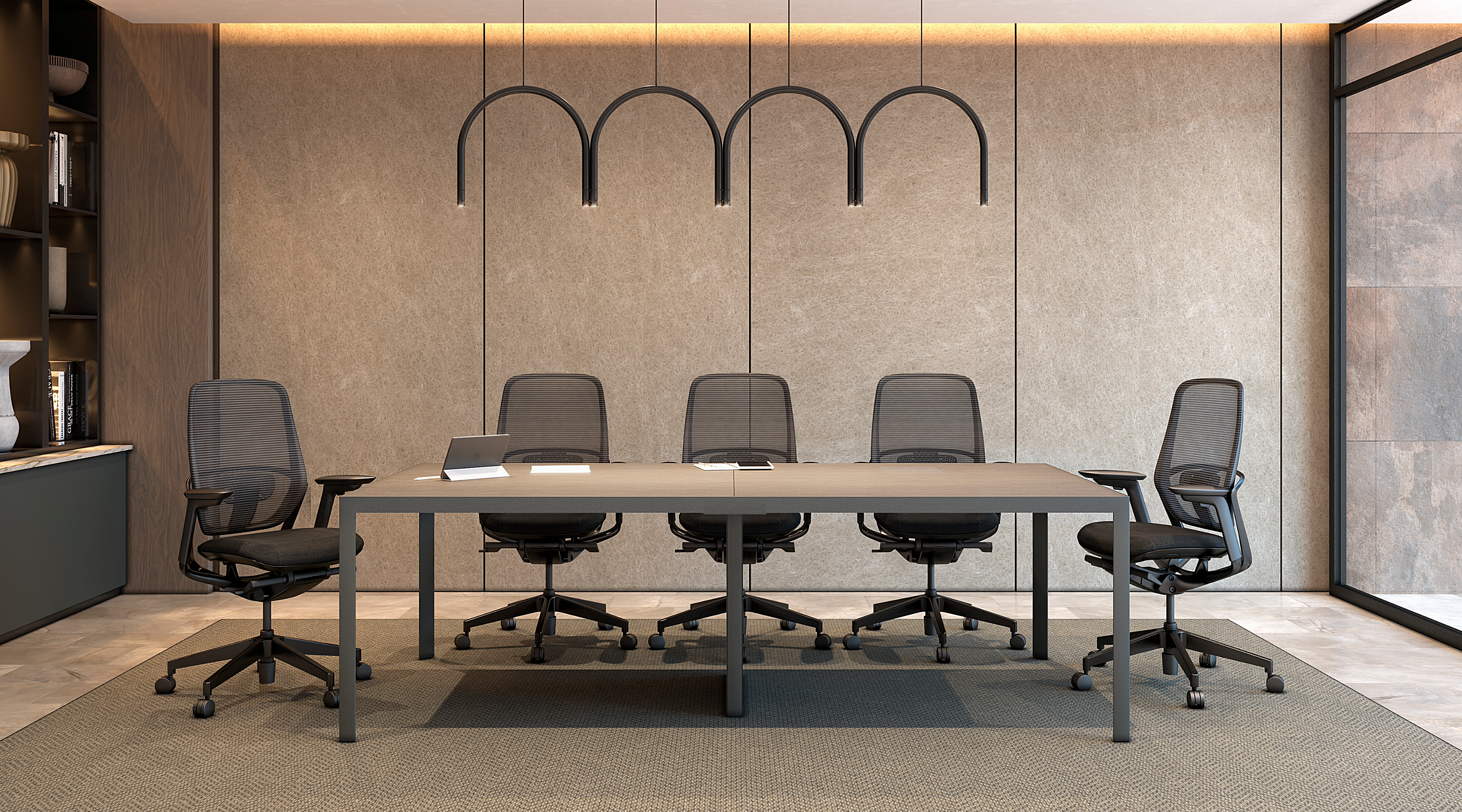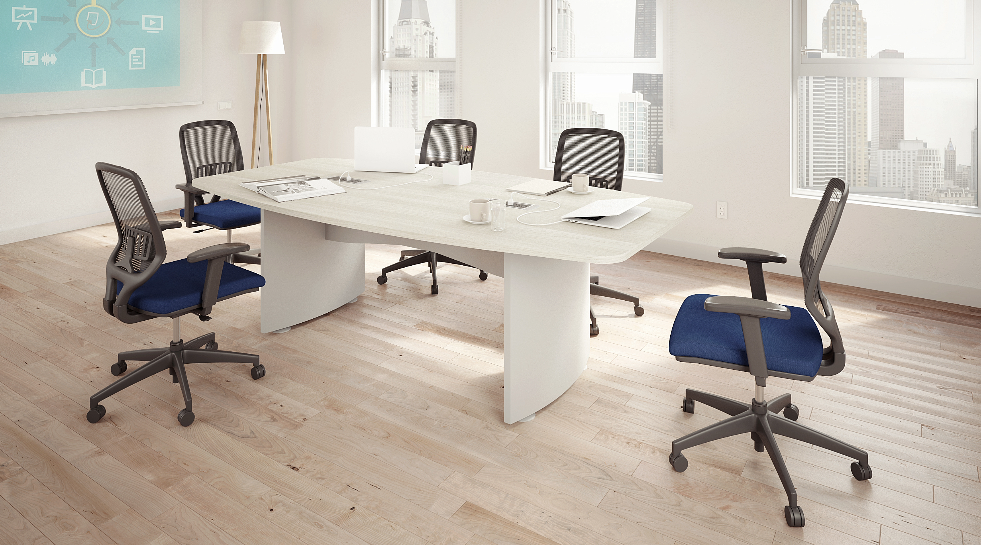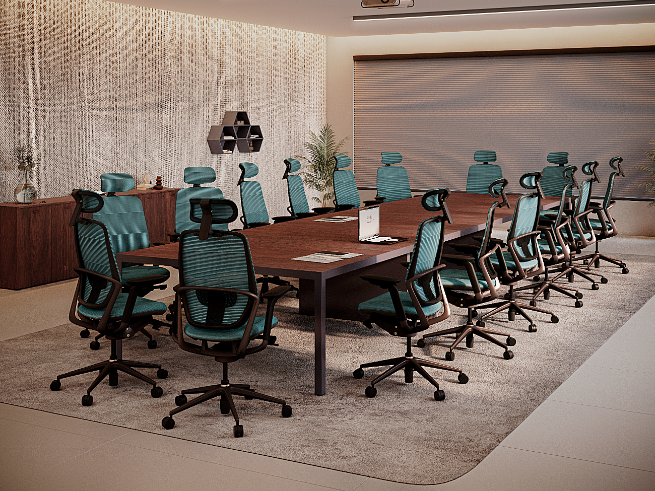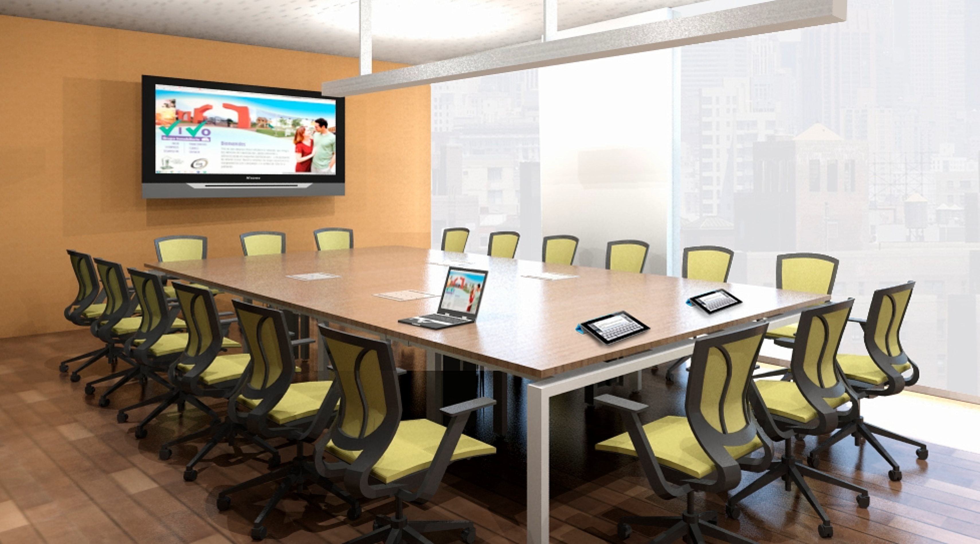 En las salas de junta se propicia el trabajo en equipo de alto desempeño, el contacto humano es esencial, la gente es sin duda el recurso más valioso de una organización. Preparadas para una absoluta conectividad, versatilidad en el manejo de cableado y soportar medios electrónicos, etc.