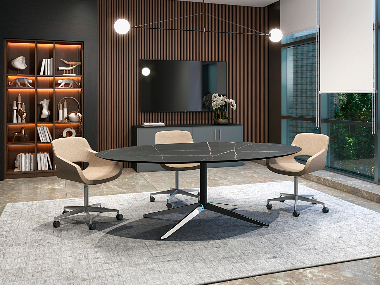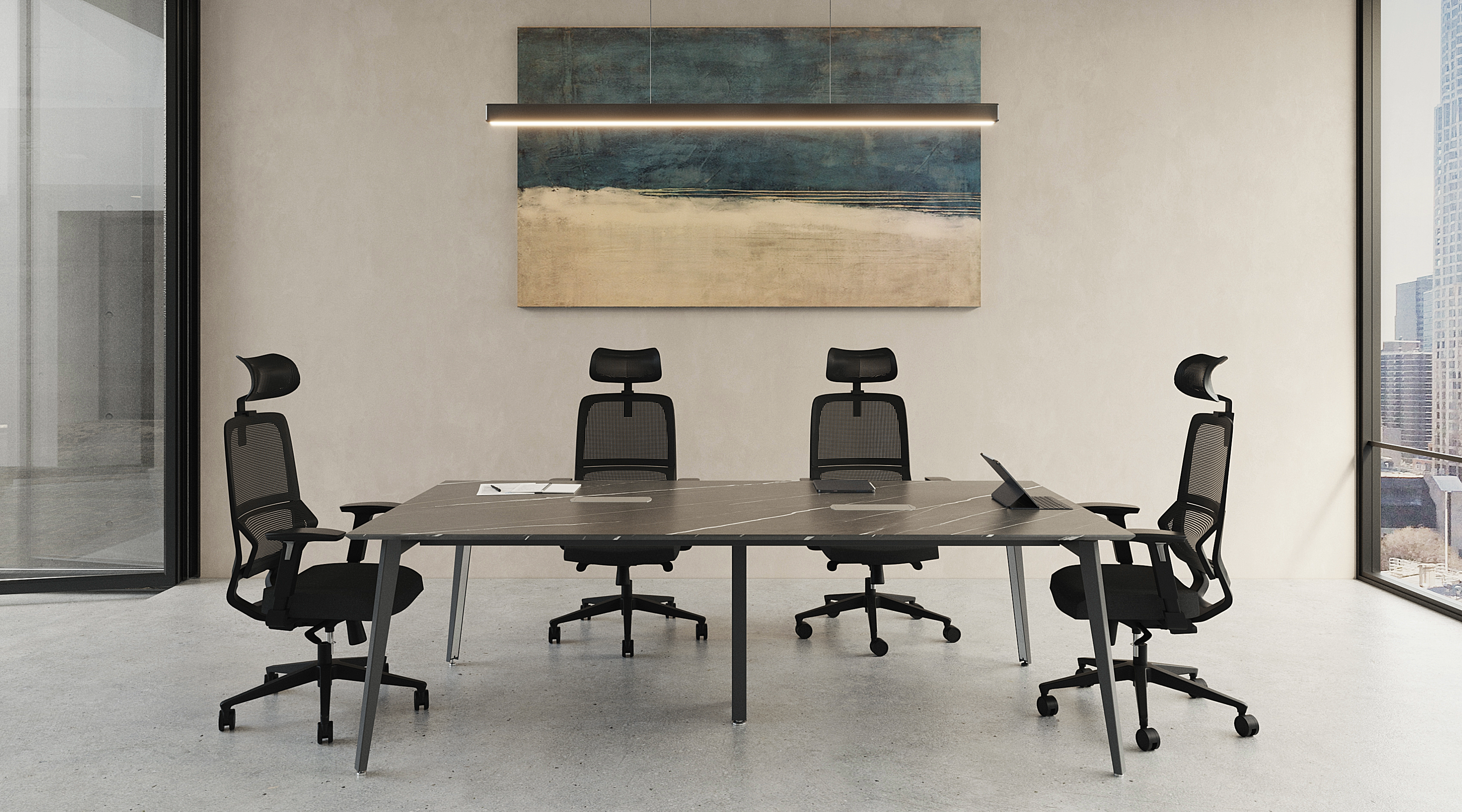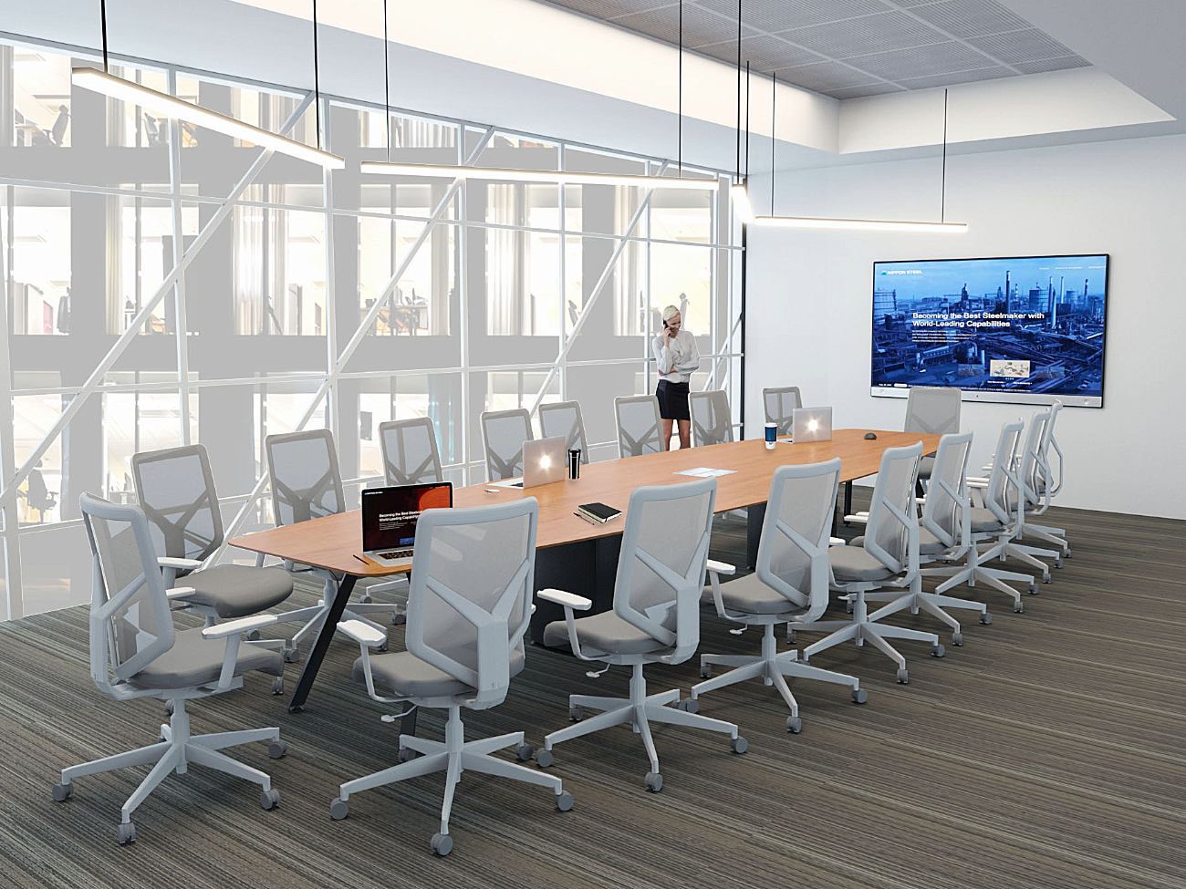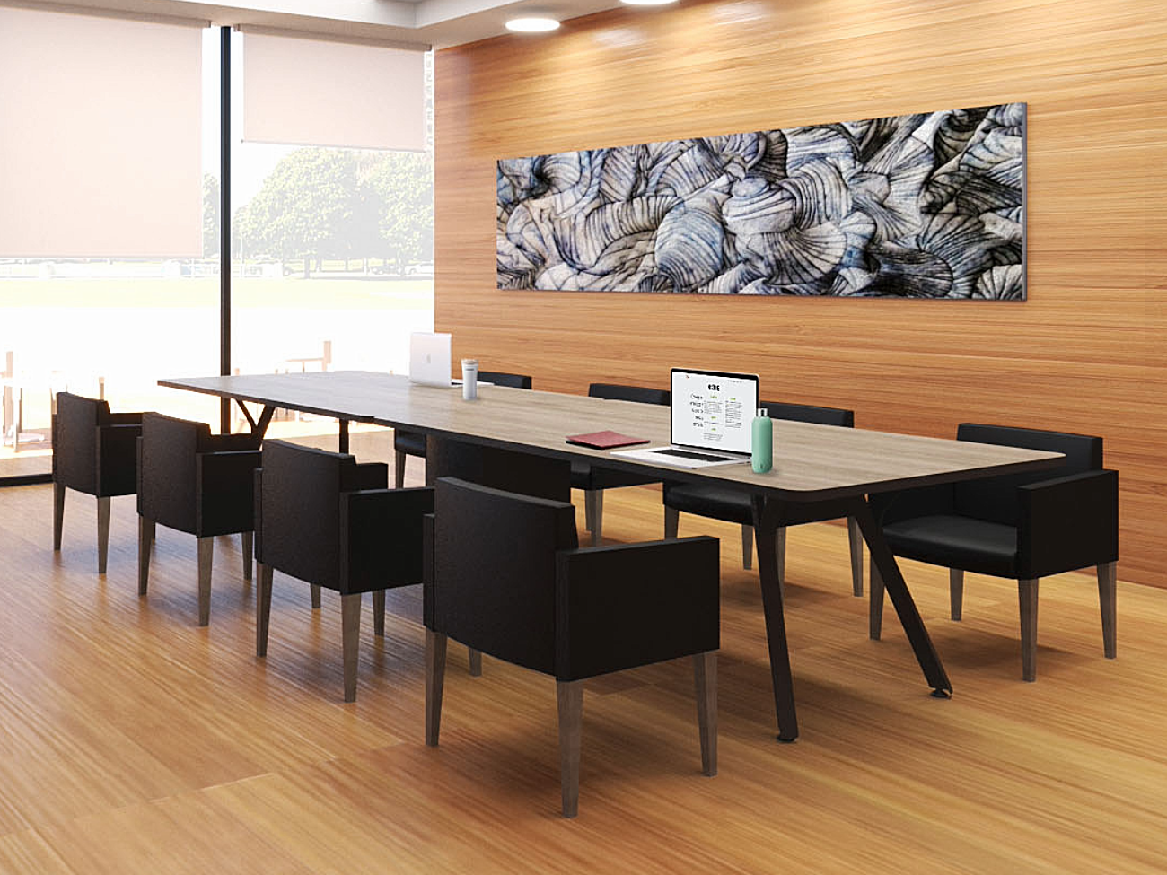 En las salas de junta se propicia el trabajo en equipo de alto desempeño, el contacto humano es esencial, la gente es sin duda el recurso más valioso de una organización. Preparadas para una absoluta conectividad, versatilidad en el manejo de cableado y soportar medios electrónicos, etc.