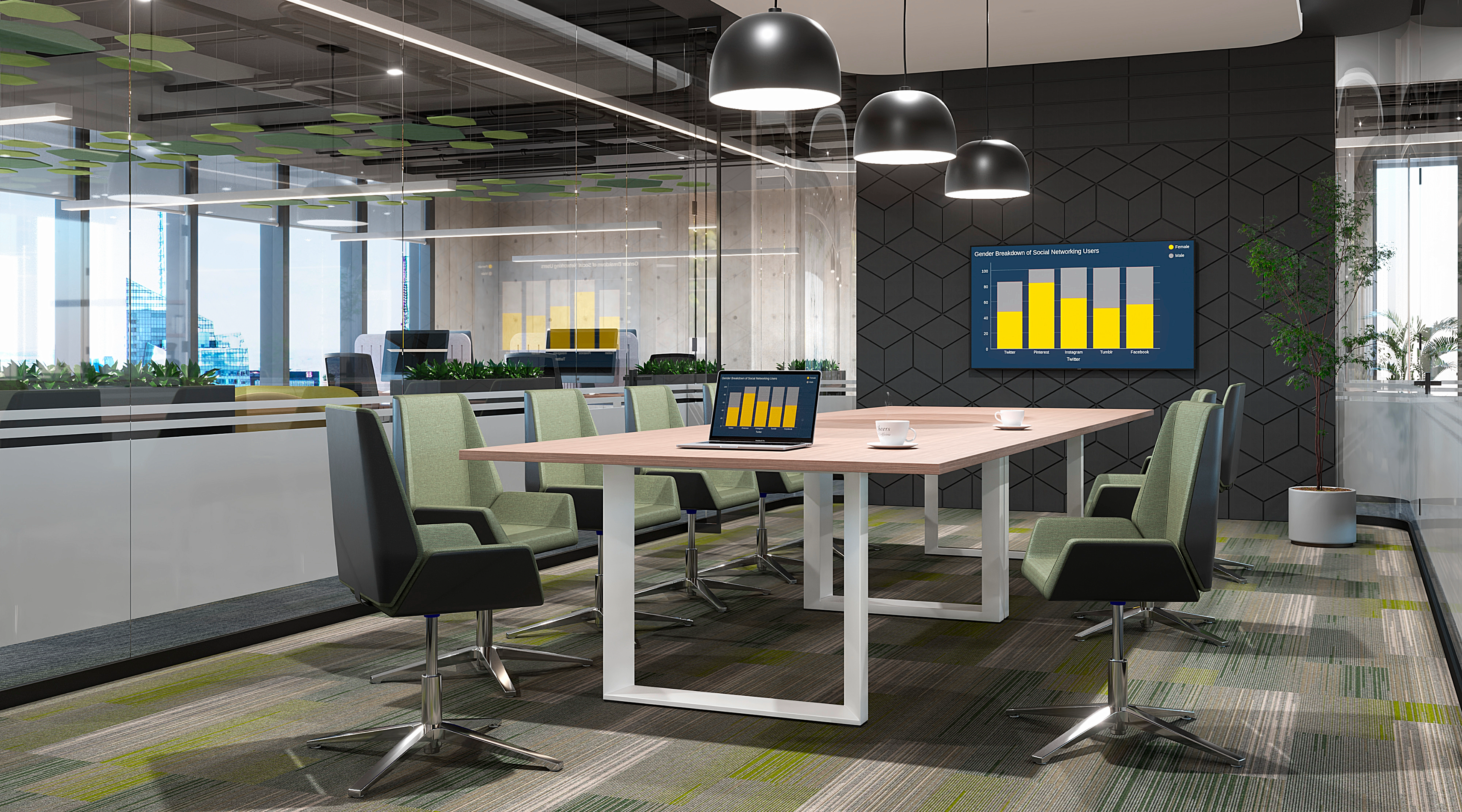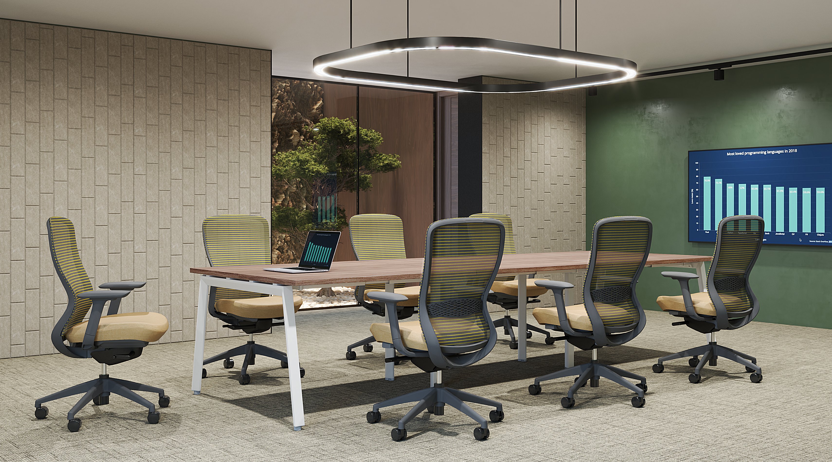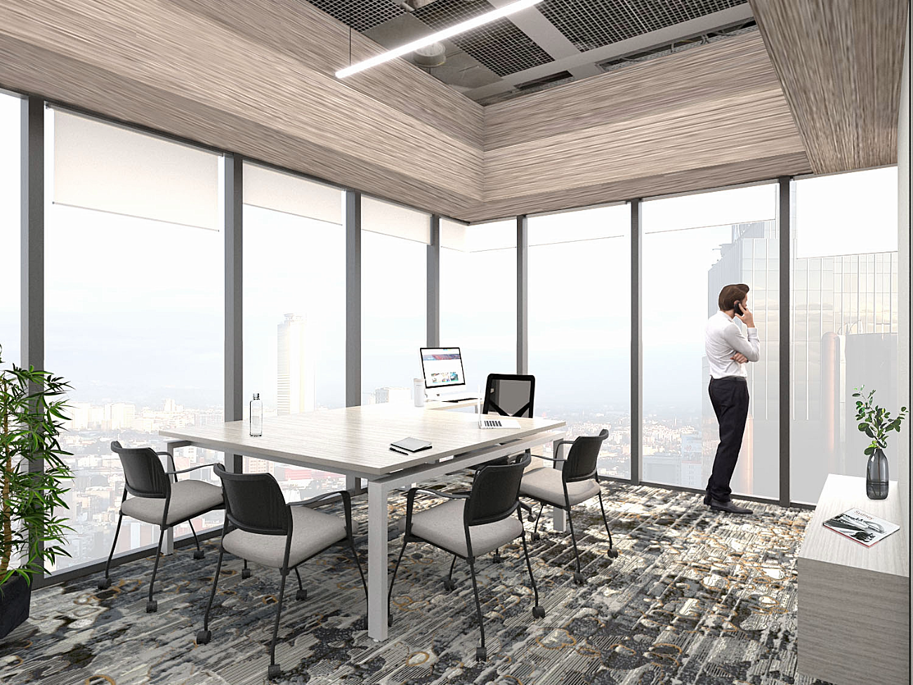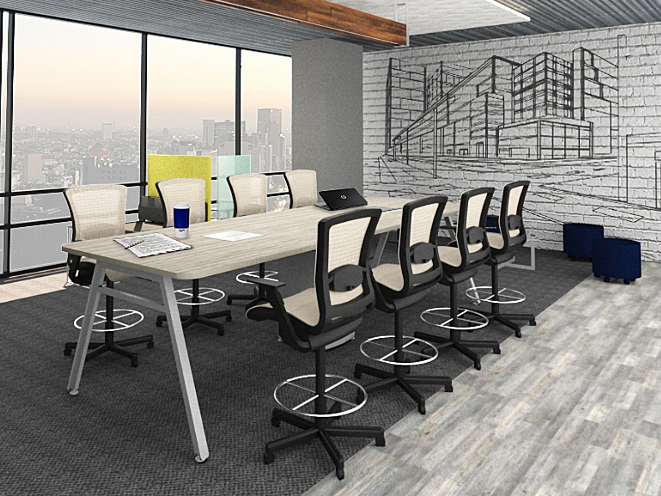 En las salas de junta se propicia el trabajo en equipo de alto desempeño, el contacto humano es esencial, la gente es sin duda el recurso más valioso de una organización. Preparadas para una absoluta conectividad, versatilidad en el manejo de cableado y soportar medios electrónicos, etc.